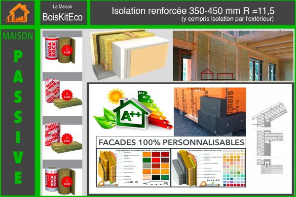 MURS STANDARD BoisKitÉco 415 mm (isolations 360 mm) : R = 10,40 m2 K/W - Lλ 0,033