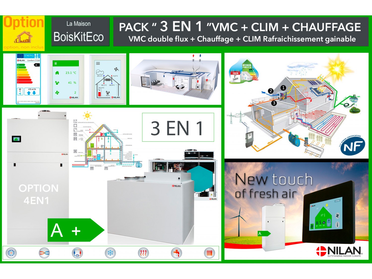 - VMC thermodynamique 3 en 1 pour ventiler, chauffer, refroidir + le ballon thermodynamique pour le produire l'eau chaude sanitaire.