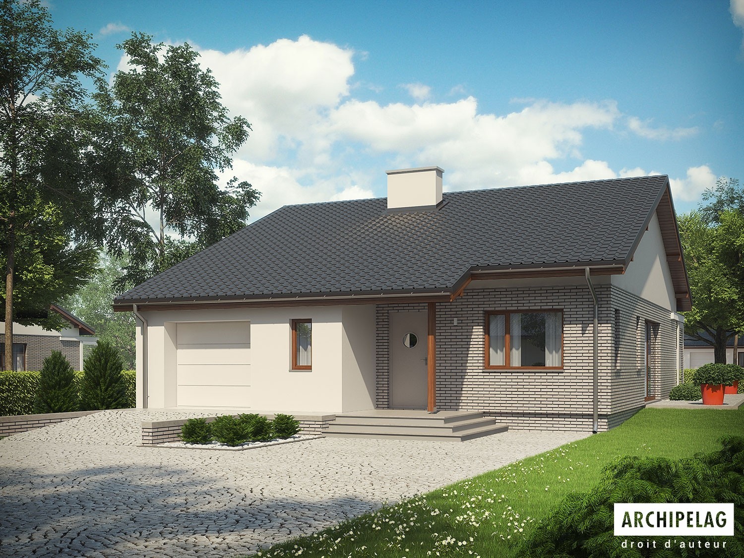 Caractéristiques : maison de plain-pied, sans sous-sol, avec garage simple