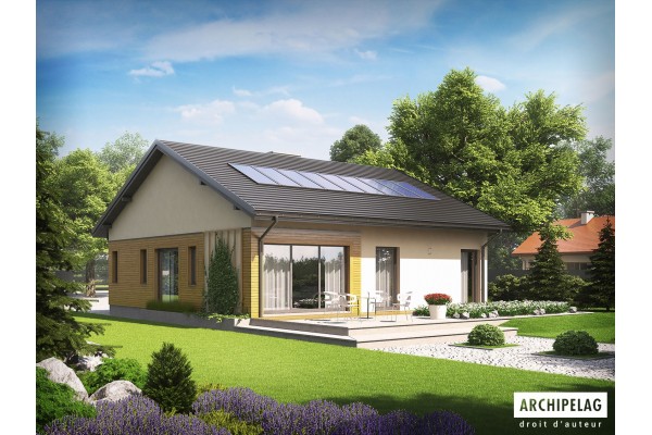 Le plan de maison type : La maison écologique à ossature bois type 3T plain-pied