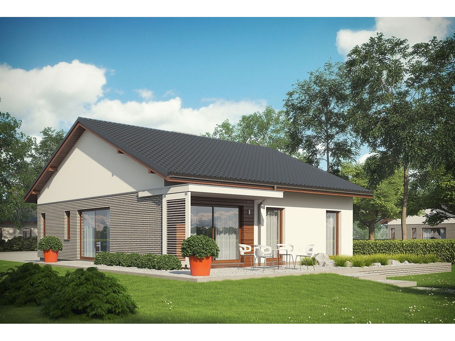 - Armando G1 ENERGO - autre finition de la façade, absence de toiture de la terrasse et de stores décoratifs et autre poteau soutenant le toit au-dessus de l'entrée