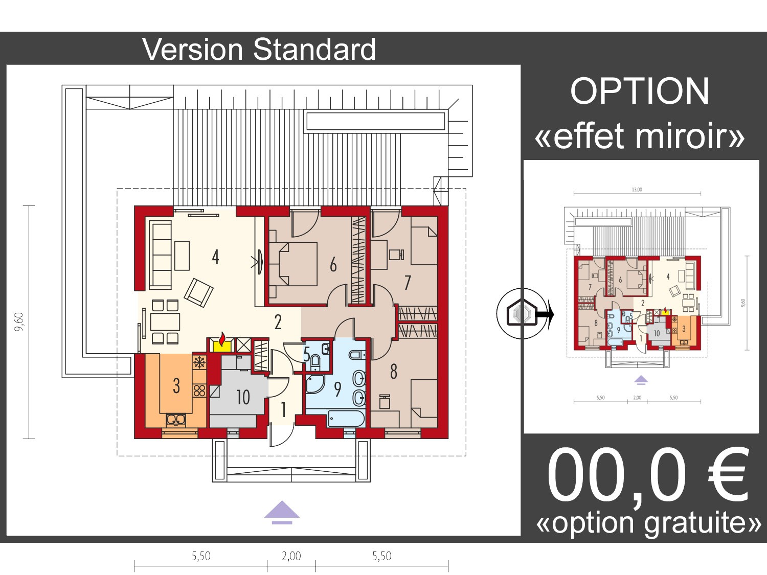 Le plan de maison type : La maison écologique à ossature bois type plain-pied 3 ch